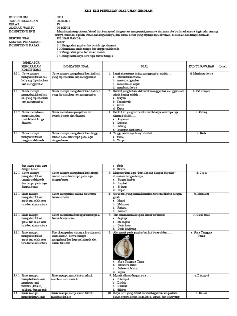 Pendidikan Seni Budaya dan Prakarya (SBDP) memegang peranan krusial dalam membentuk kreativitas, apresiasi, dan keterampilan anak usia sekolah dasar. Di Kelas 4, Tema 8 yang sering kali berfokus pada "Daerah Tempat Tinggalku" menjadi ajang bagi siswa untuk menggali kekayaan budaya dan seni yang ada di lingkungan sekitar mereka. Agar pembelajaran dan penilaian SBDP Tema 8 ini berjalan efektif, pemahaman mendalam tentang kisi-kisi soal menjadi kunci bagi guru maupun siswa.